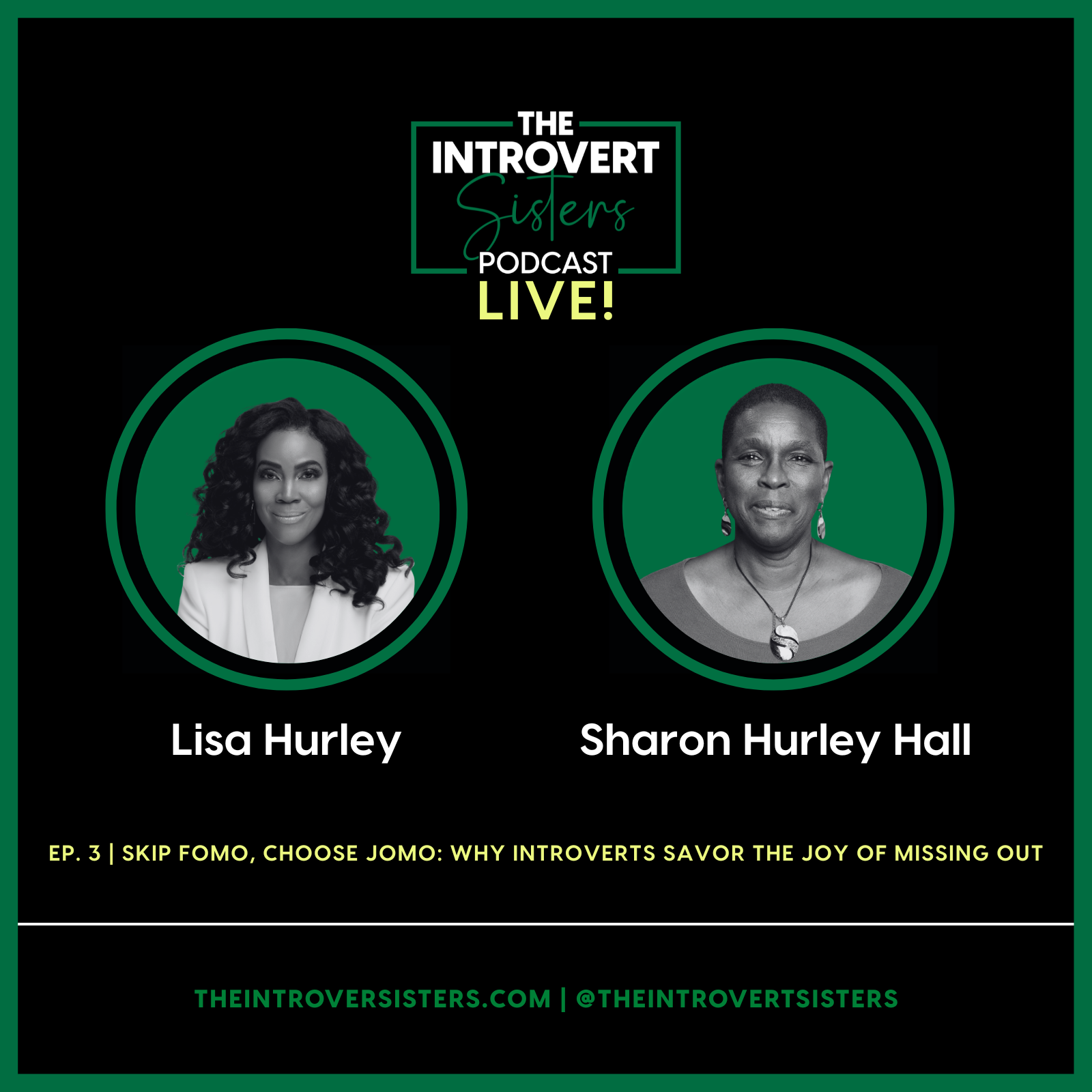 Opting out is the new opting in. In this third episode of The Introvert Sisters LIVE! Podcast, Sharon Hurley Hall and Lisa Hurley celebrate the quiet power of choosing JOMO: the Joy Of Missing Out.